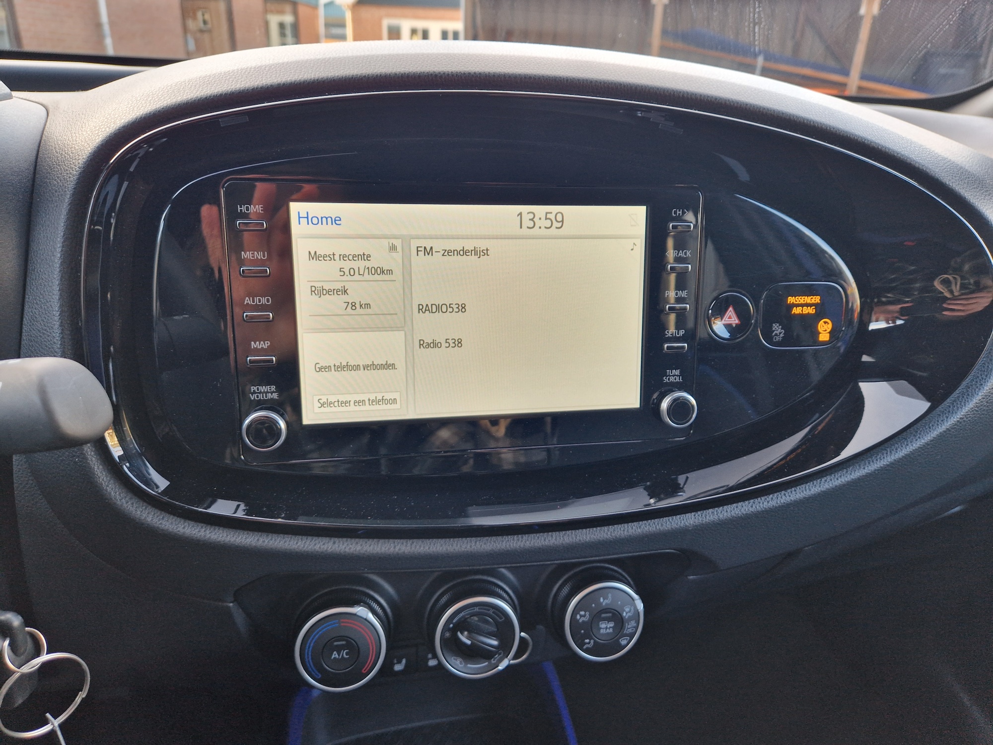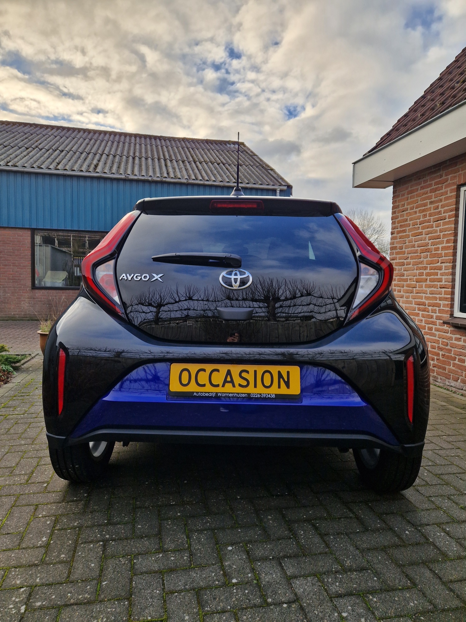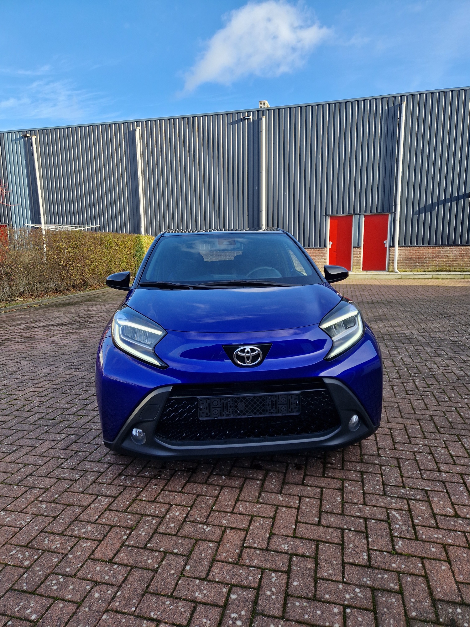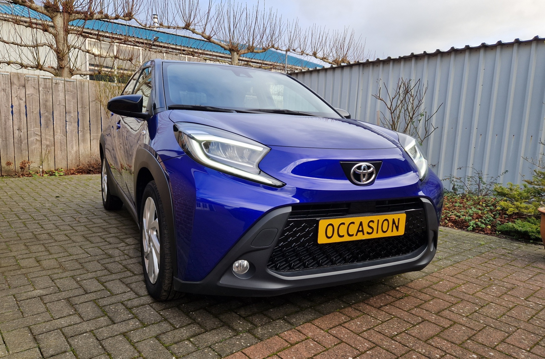 Zeer complete Aygo X Pulse. Bi-tone, Juniper Blue met zwart. Het Juniper Blue komt terug in het interieur. Mooi groot multimediascherm.